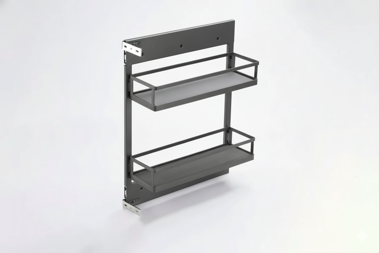 Flat wire side runners are space-saving pull-out organizers crafted to fit flawlessly into narrow cabinets. They are great for storing bottles, jars, and small containers while keeping everything neatly arranged and accessible.