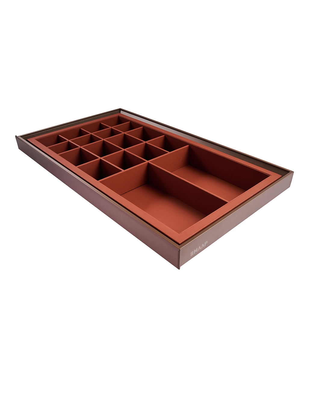 The leather underwear case is a dedicated drawer insert designed to store undergarments in a neat and hygienic way. It has a soft close feature and keeps everything sorted with ease and elegance.
